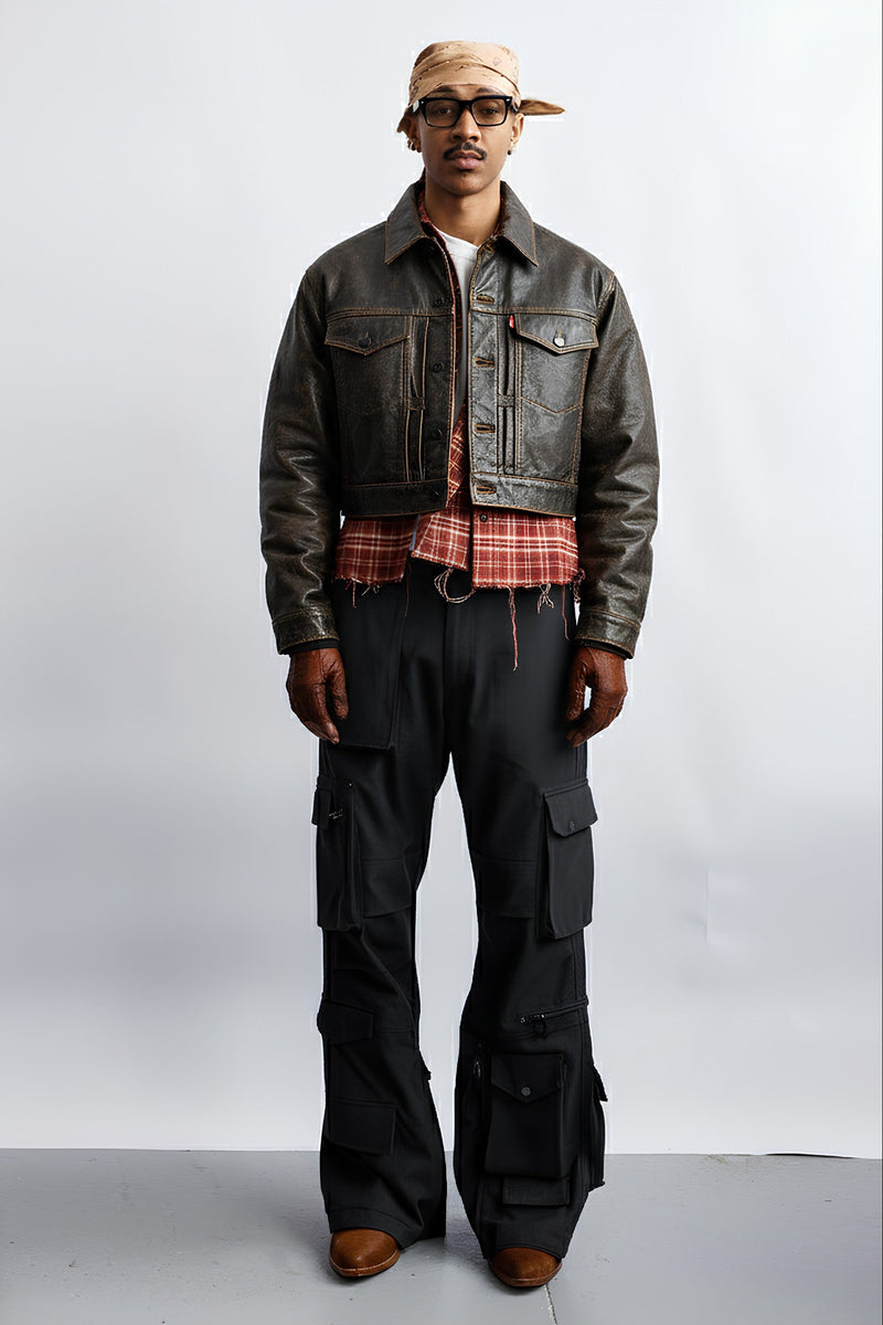 Cropped baggy leather Jacket